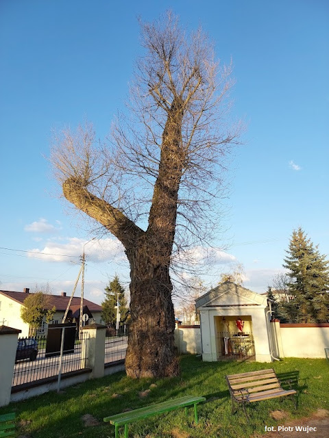 Widoczny na moich zdjęciach kościół został ufundowany w 1855 roku przez Wincentego i Teklę Rapackich, a jego bryła ulegała potem pewnym zmianom podczas kilku remontów, w tym wynikającego ze zniszczeń dokonanych przez Niemców (niemieccy naziści podobnie jak komuniści zwalczali katolicyzm, przypominam w Niemczech – Republice Weimarskiej – w 1933 roku katolicy stanowili mniejszość, tj. ok 25% obywateli Niemiec).